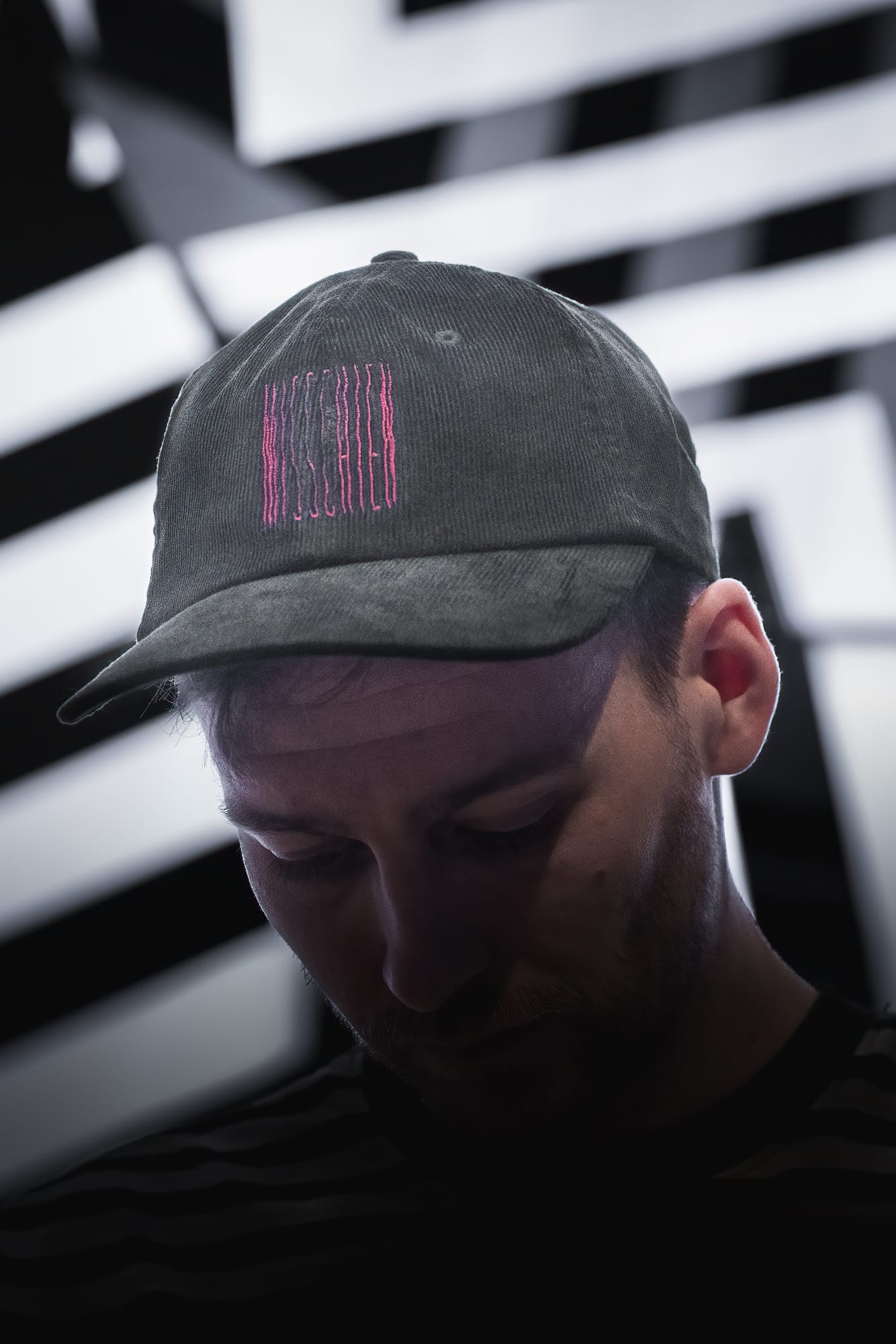 Zwarte pet met ribbels waar 'Misschien' is op geborduurd.